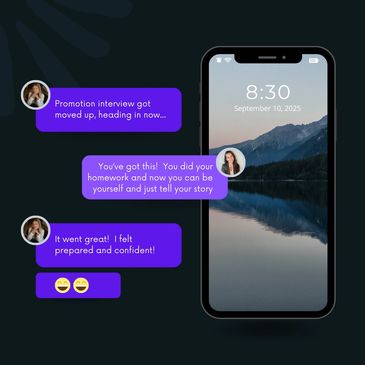 Always feel supported by having access to ongoing support via messaging between sessions, where you can ask for quick guidance, feedback, celebrate wins and have a sounding board as the inevitable curveball or milestone arises.